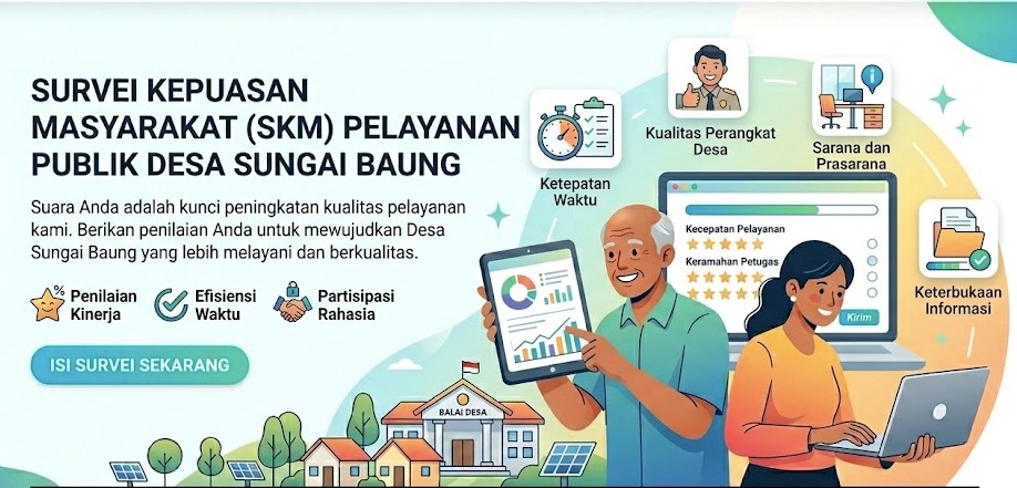 Kehadiran Bapak/Ibu/Saudara dalam halaman ini sangat kami apresiasi. Pemerintah Desa Sungai Baung terus berkomitmen untuk memberikan pelayanan publik yang cepat, tepat, dan transparan. Namun, kami menyadari bahwa kesempurnaan pelayanan hanya dapat diukur melalui sudut pandang Anda sebagai pengguna layanan.
